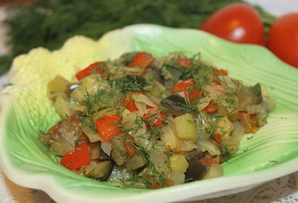 Een eenvoudig, snel, maar ontzettend lekker gerecht, een ware verlossing voor de gastvrouw. De groentestoofpot blijkt erg geurig en sappig te zijn. Naar smaak kun je vlees naar keuze aan het recept toevoegen, maar ook zonder is de stoofpot stevig en smakelijk.