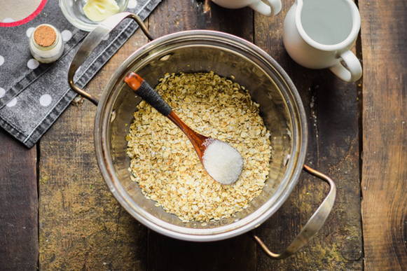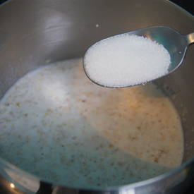 - Roer de granen en suiker erdoor, voeg naar smaak kaneel of vanilline toe.