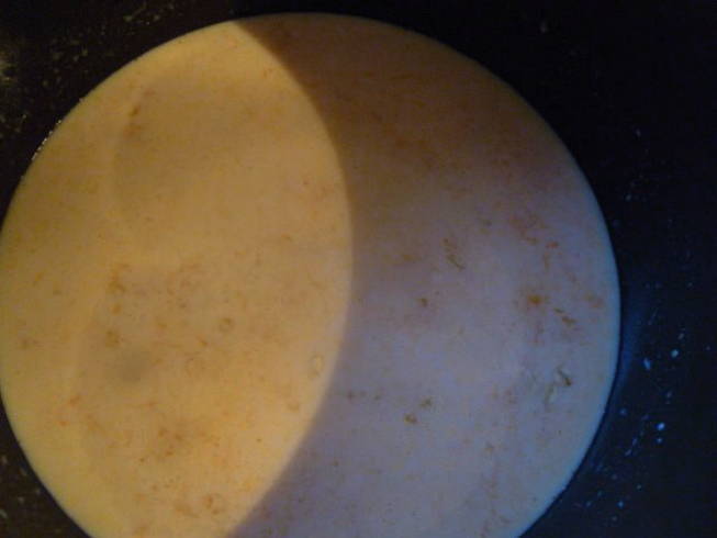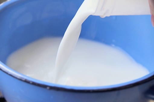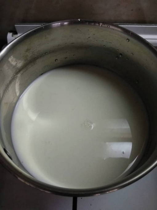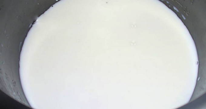 - Giet melk in een pan en verwarm tot het begint te rijzen.