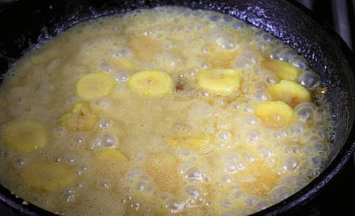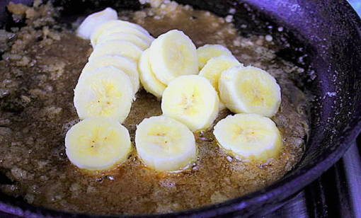 - Leg vervolgens de in cirkels gesneden banaan in de pan.