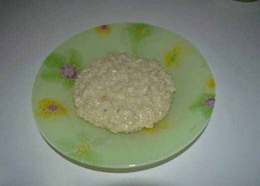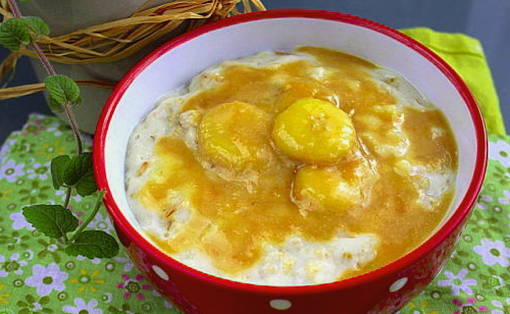 - Als de pap klaar is, plaats je deze op kommen, voeg je de bananenpuree en de bananenboterkaramel toe. Het gerecht blijkt smakelijk en erg lekker.