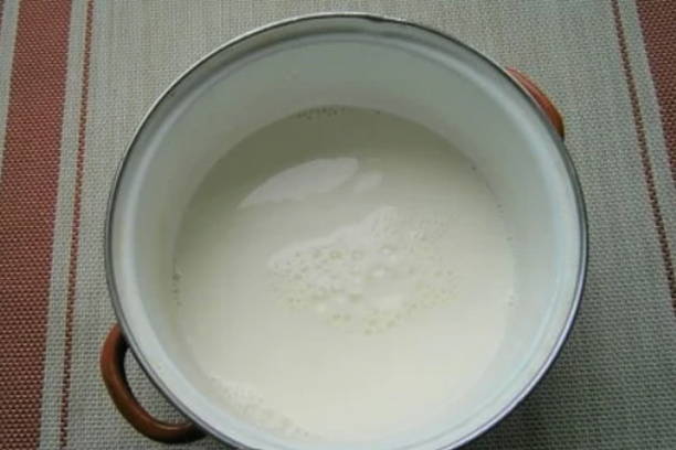 - Giet melk in een pan en verwarm tot het begint te rijzen.