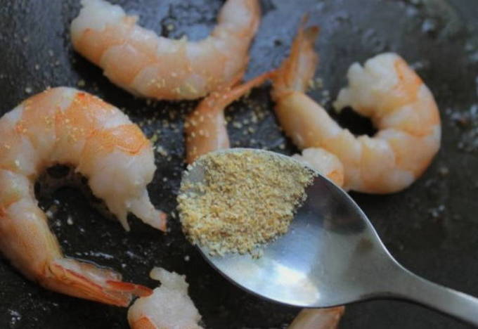 - Bak het ingrediënt vervolgens 2-3 minuten in olijfolie. Bestrooi met gedroogde knoflook naar smaak.