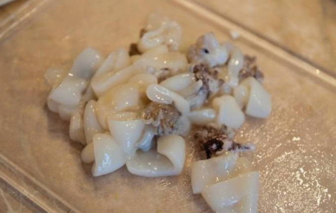 - Ontdooi en snijd de zeevruchten indien nodig.