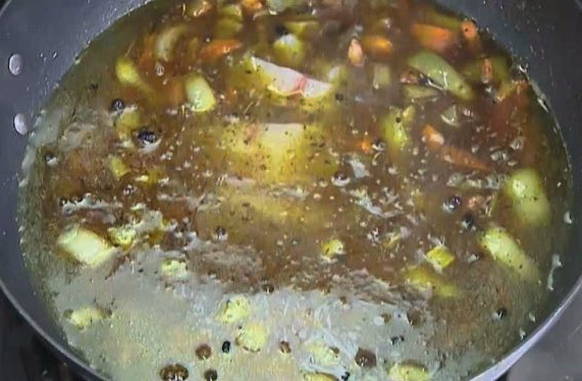 - Dompel het ingrediënt in een koekenpan met uien en knoflook.