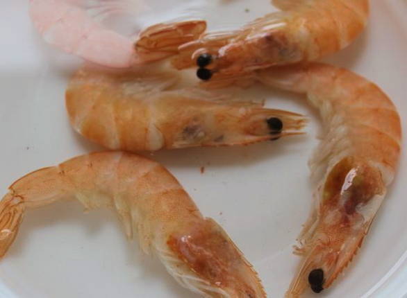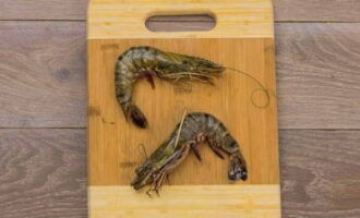 We wassen de ongepelde garnalen en verwijderen hun binnenkant, waarbij de schaal overblijft.