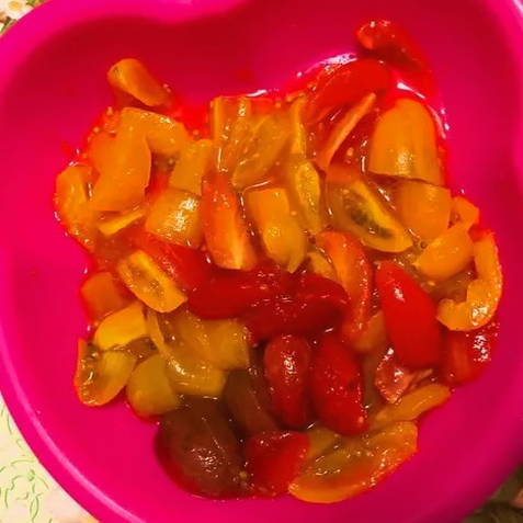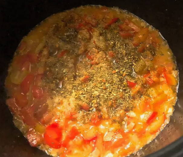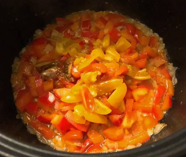- Voeg de gepelde tomaten toe aan de slowcooker.