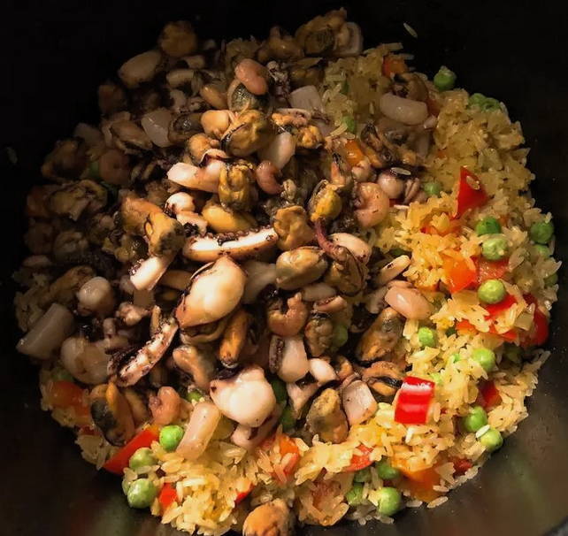 Een eenvoudig recept voor paella met zeevruchten in een slowcooker