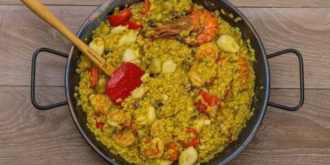 Een helder en smakelijk Spaans gerecht, dat in letterlijk een uur kan worden bereid en waarvan het resultaat u en uw gasten zal verbazen. Paella blijkt erg mals te zijn, met een lichte zuurheid en pittige afdronk.