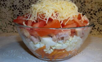 Salade met gerookte kip en Koreaanse wortel - 10 stapsgewijze recepten