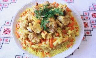 Pilaf met kip in een pan - 8 recepten