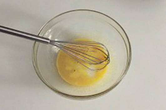 - Klop in een kom het ei, zout en suiker luchtig.