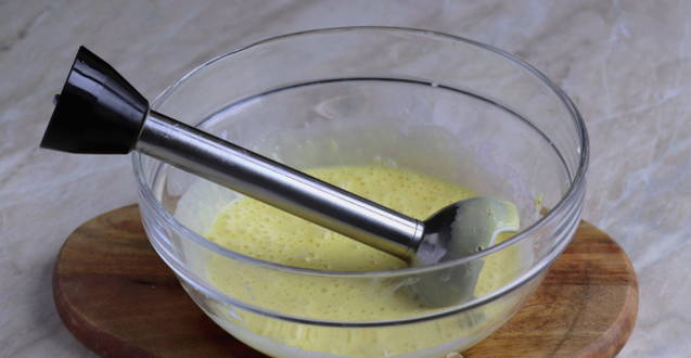 - Klop het mengsel met een blender tot een glad mengsel.