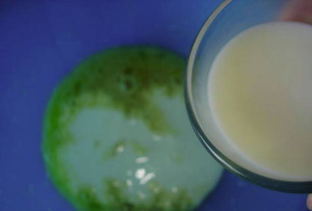 - Giet vervolgens melk en gezeefde bloem erbij, kneed het pannenkoekdeeg.