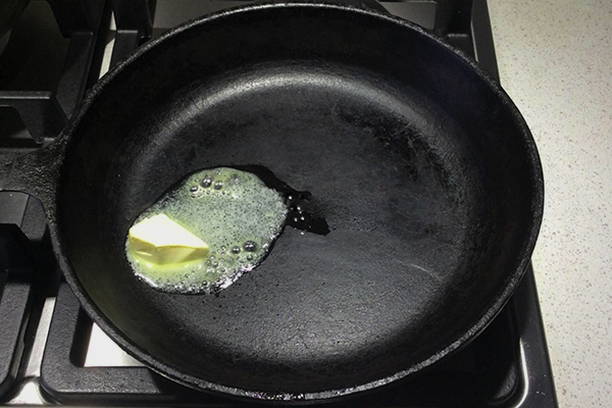- Verhit een koekenpan op middelhoog vuur, smelt een beetje boter.