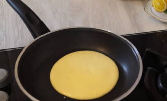Verwarm een koekenpan voor en zet het vuur laag tot medium. De pan moet antiaanbaklaag zijn. Leg het deeg in de pan en vorm er ronde pannenkoekjes van. Pannenkoeken worden vrij langzaam gekookt, ze moeten goed bakken.