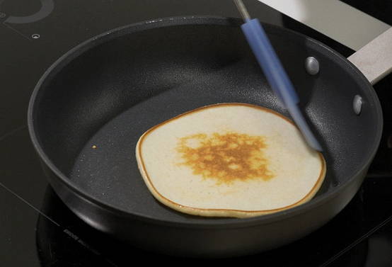 - Bak de pannenkoeken in een droge koekenpan op middelhoog vuur.