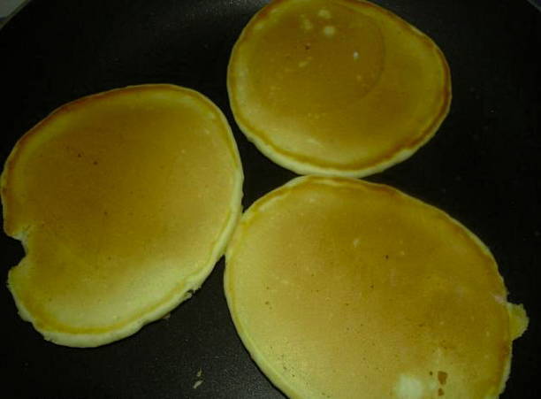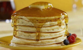Pannenkoeken zijn luchtige pannenkoeken in Amerikaanse stijl. Het deeg voor hen wordt dik en luchtig gekneed, zodat ze zich niet erg in de pan verspreiden. In de klassieke versie van serveren wordt elke pannenkoek ingevet met boter, op elkaar geplaatst en overgoten met ahornsiroop.