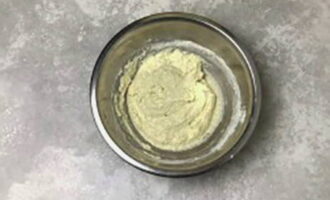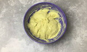 Voeg opgeklopte dooiers, zout en zachte boter toe aan het bij elkaar passende deeg, meng tot een gladde massa. Leg vervolgens de eiwitmassa neer en meng met zachte bewegingen.