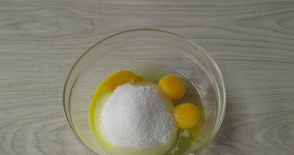 - Klop eieren met suiker.