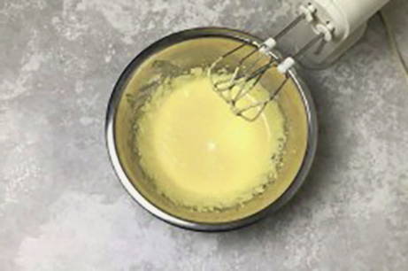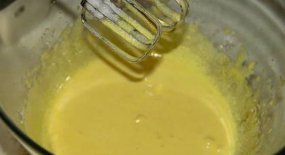 - Mix de dooiers met een theelepel suiker tot ze schuimig zijn. Smelt de boter, koel af en voeg toe aan de dooiers.