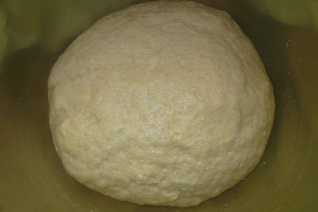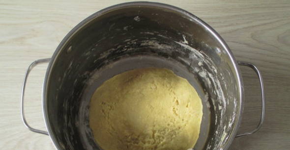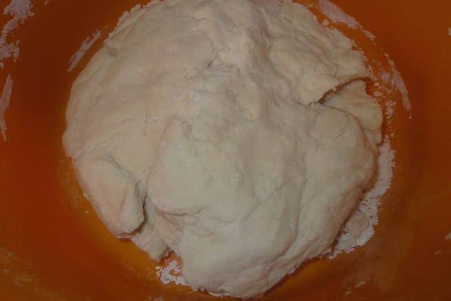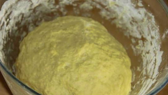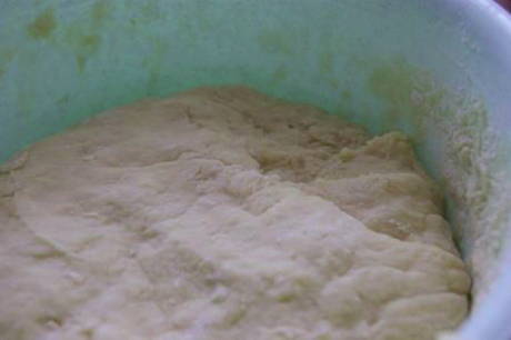 - Giet de resterende bloem erin, kneed het deeg. Het mag niet te strak of te plakkerig zijn. Laat het deeg een half uur warm staan om te rijzen.