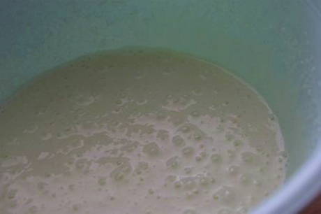 - Verwarm de melk, verdun de gist erin en laat 15 minuten staan.