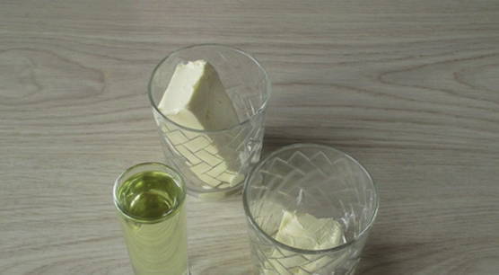 - Smelt 50 gram boter, 100 gram - laat op kamertemperatuur smelten.