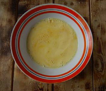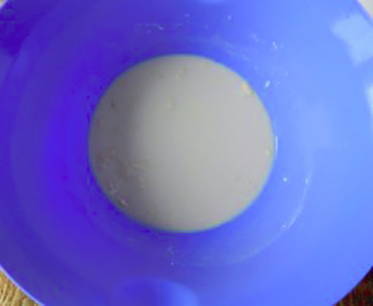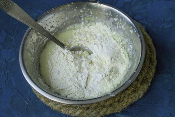 - Giet de resterende melk in een kom, voeg 2 eetlepels bloem en een eetlepel suiker toe, roer.