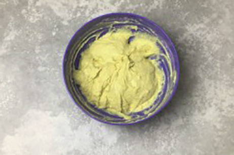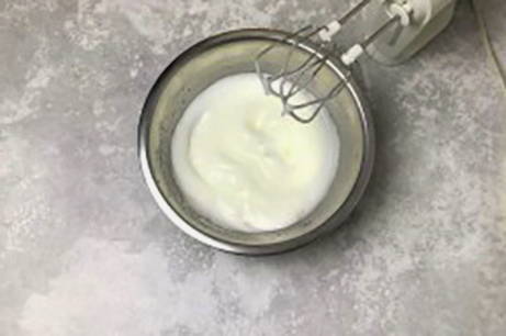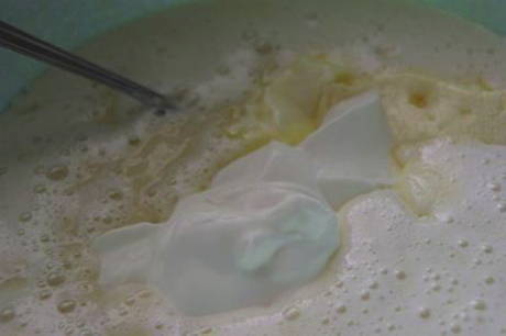 - Doe vervolgens zure room en zachte boter in een kom.
