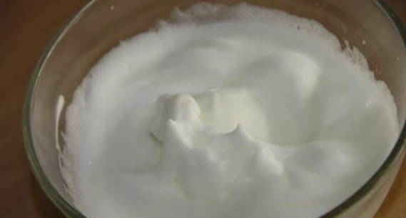 Klop de eiwitten apart tot een donzig wit schuim.