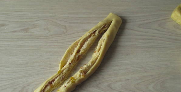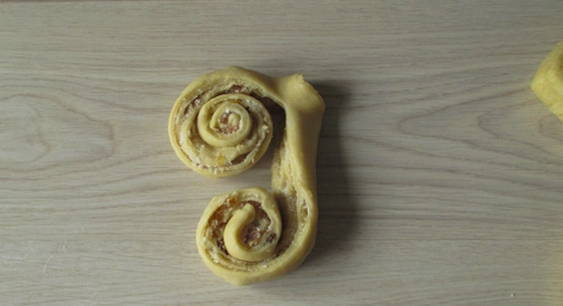 - Draai elke helft van de rol in een spiraal en vouw ze op elkaar.