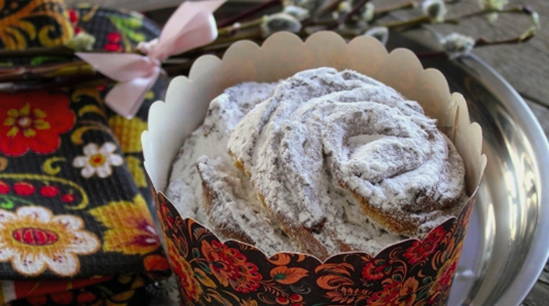 Feestelijke paascake kan worden gebakken in de vorm van een kraffin. Dit is een kruising tussen een muffin en een croissant. De grillige gewikkelde vorm zal de aandacht trekken en zal geliefd zijn bij kinderen.