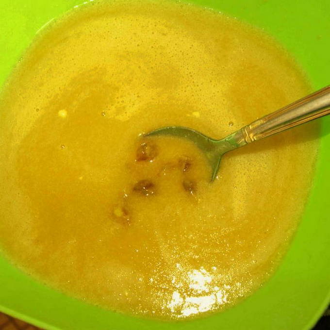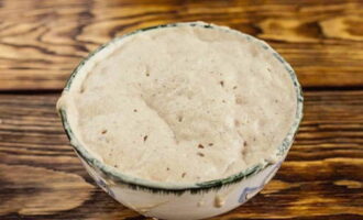 Verwarm de melk een beetje. Los gist op kamertemperatuur op in 20 milliliter melk, voeg een snufje suiker en bloem toe, meng. Laat het deeg een half uur op een warme plaats staan.