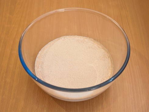 - Verwarm de melk een beetje en los de droge gist erin op.