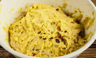 - Roer vervolgens de gedroogde vruchten door het deeg.