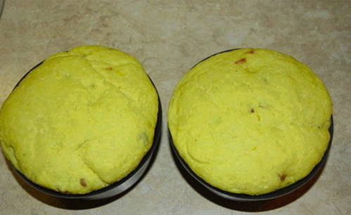 - Vet de vormpjes in met olie of bedek ze met bakpapier. Vul de vormen met 1/3 van hun volume met deeg, laat ze 40-60 minuten warm staan, gedurende welke tijd het deeg zal rijzen.