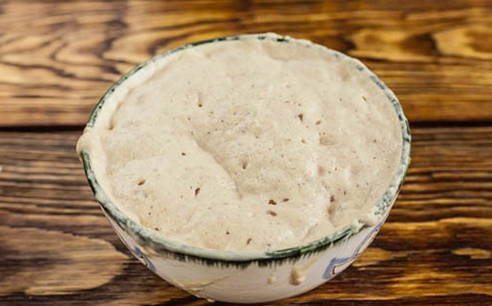 Verwarm de melk een beetje. Los gist op kamertemperatuur op in 20 milliliter melk, voeg een snufje suiker en bloem toe, meng. Laat het deeg een half uur op een warme plaats staan.
