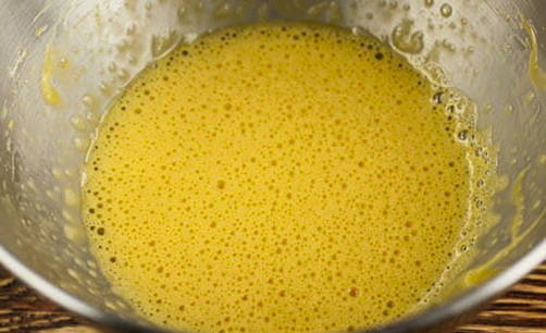 - Combineer wrongel met gesmolten boter, zout, vanille, citroenschil en kurkuma.