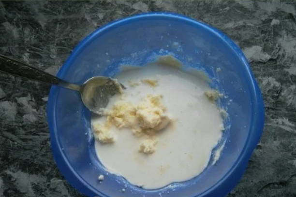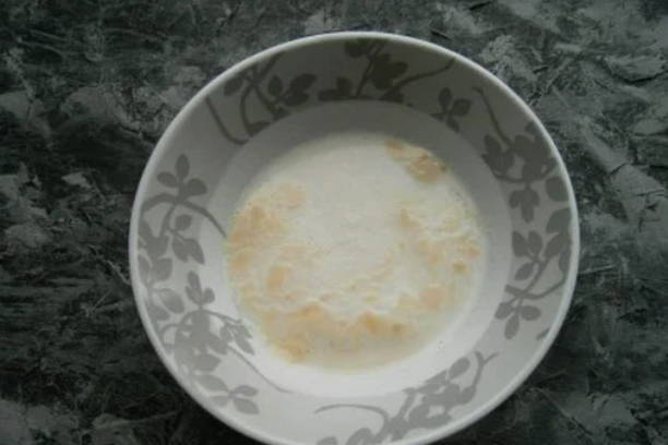 - Meng gist met een halve theelepel suiker en 50 milliliter warme melk. Laat het mengsel 15 minuten op een warme plaats staan.