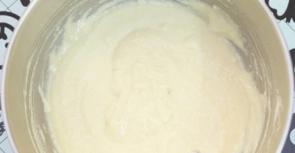 - Voeg opgeklopte dooiers toe aan het bijpassende deeg, meng. Voeg vervolgens zachte boter toe, roer de massa tot een gladde massa. Voeg vervolgens de opgeklopte eiwitten toe en meng opnieuw goed.