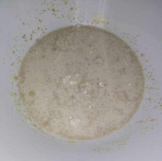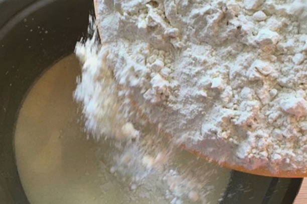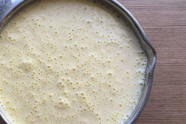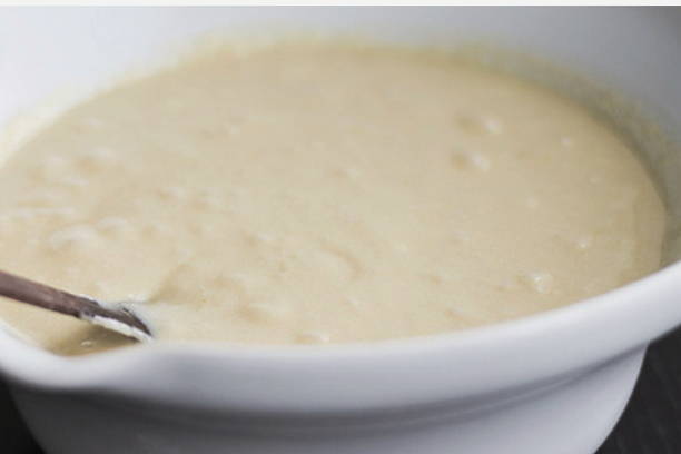 - Giet een theelepel bloem en suiker, gist in warme melk, roer en laat 10 minuten staan.