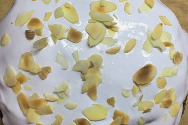 - Bereid het glazuur voor. Klop de afgekoelde eiwitten tot stevige pieken. Voeg geleidelijk de poedersuiker en het citroensap toe, blijf kloppen. Koel de cakes en versier met glazuur, laat ze een nacht staan om het glazuur te bevriezen.