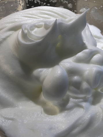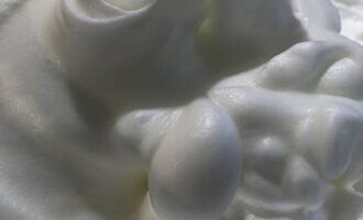 - U kunt beginnen met het voorbereiden van het glazuur. Klop de eiwitten stijf met een snufje zout, voeg dan de poedersuiker toe en klop tot stevige pieken.