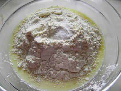 - Meng bloem met bakpoeder en vanille, zeef deze massa in een kom en kneed het deeg.