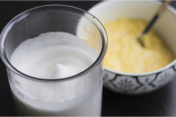 - Verwarm de melk tot 35-40 graden.