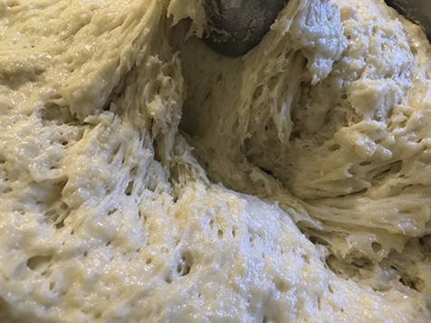 - Zeef de bloem door een fijne zeef en kneed het deeg. Het moet dik en stroperig zijn.Bedek de kom met het deeg met een handdoek en laat het een uur warm staan. Kneed daarna het deeg en laat het nog 40 minuten staan.