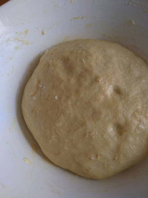 - Voeg vervolgens de resterende bloem toe en kneed het deeg, het moet steil zijn en niet aan je handen plakken. Dek de kom af met een handdoek en laat 40-60 minuten op een warme plaats staan.
