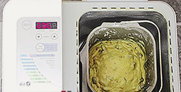 - Plaats de emmer met ingrediënten in de broodbakmachine, selecteer de modus "Normaal brood". Let tijdens het kneden op de consistentie van het deeg, als het te dun is, voeg dan een beetje bloem toe. Voeg na 15-20 minuten de rozijnen toe.