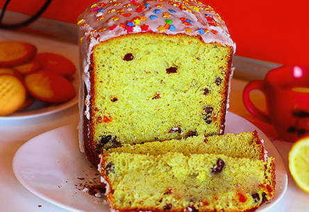 - Haal de afgewerkte cake uit de broodmachine, laat afkoelen en decoreer naar wens.